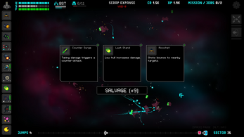 Harvest drifting wreckage for credits and resources. Install modules, augments, drones, sockets, and weapon upgrades to shape your ship into a finely tuned machine, or a reckless experiment.
